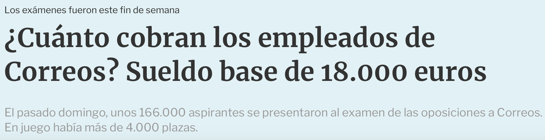[…] El pasado domingo, unos 166.000 aspirantes se presentaron al examen de las oposiciones a Correos. En juego habían un total de 4.005 plazas, para un trabajo fijo con contrato indefinido.
