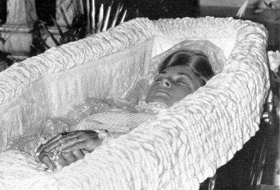 El cuerpo de Grace Kelly, Princesa de Mónaco, en su funeral en 1982. Sufrió una hemorragia cerebral leve mientras conducía y se salió de la ladera de una montaña.