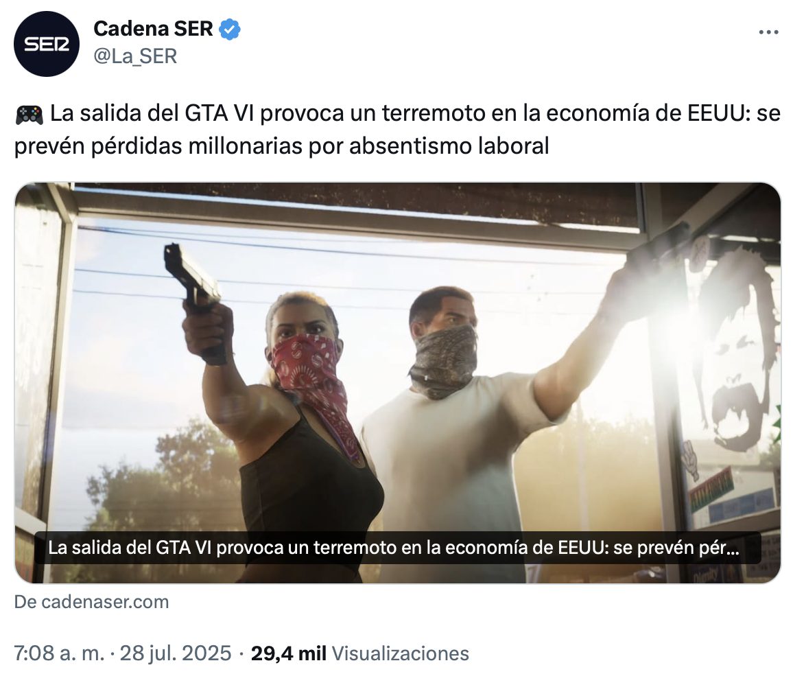GTA VI: PSOE edition GTA VI: PSOE Edition ???? pic.twitter.com/XFnQJFHTUi — Wall Street Wolverine (@wallstwolverine) December 12, 2023 gtagta 6gta vipsoe No hay comentarios random 13 diciembre, 2023