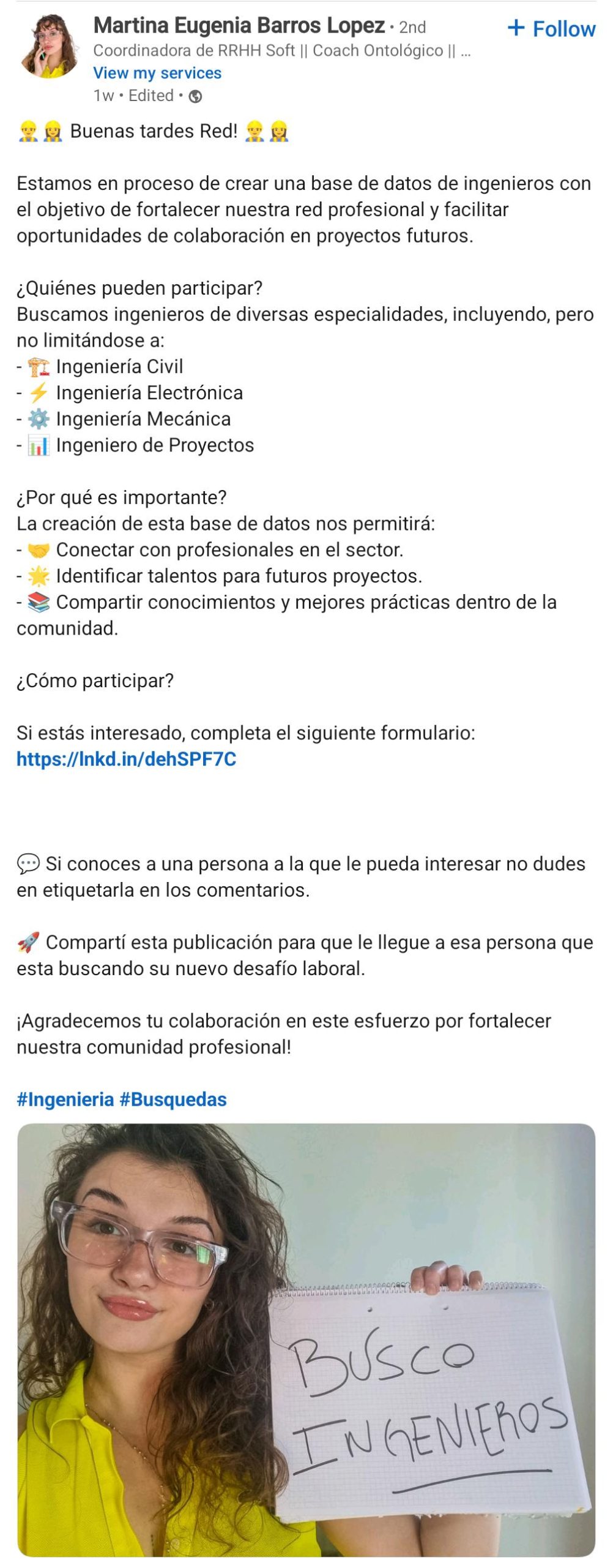 Esta chica busca ingenieros (linkedin)