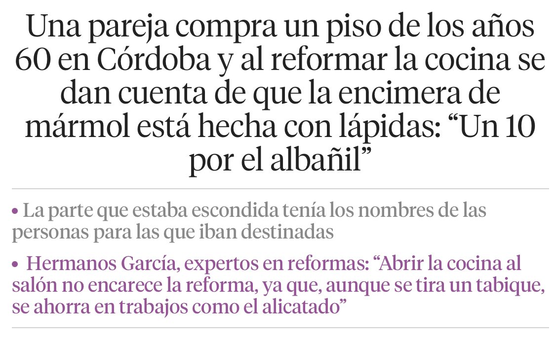 Ya cuando comienza el vídeo en si podemos ver a un chico quitando la parte de la encimera de la cocina, previsiblemente para colocar una nueva más adelante. Ante su sorpresa, cuando comienza a retirar las grandes losas de mármol se encuentra con algo que no esperaba. Al mirar por debajo se ve que hay un nombre de persona tallado en la piedra. Esa parte estaba hecha con lápidas que se usan en los cementerios. | @lavanguardia