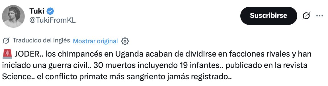 El 24 de junio de 2015 algo cambió en el parque nacional de Kibali (Uganda), hogar de los Ngogo, la mayor comunidad de chimpancés de África. “Fue cuando vimos el primer caso de individuos de diferentes vecindarios del grupo tratándose como extraños”, cuenta Aaron Sandel, primatólogo de la Universidad de Texas en Austin (Estados Unidos) y primer autor de un estudio publicado en Science que muestra cómo desde dentro de un colectivo que lleva años de convivencia pacífica puede surgir primero la polarización, después la división y, finalmente, la violencia y la guerra. Desde aquel verano, la comunidad de Ngogo se ha partido en dos y los ataques letales, también a las crías, han acabado con decenas de muertos. | @elpais