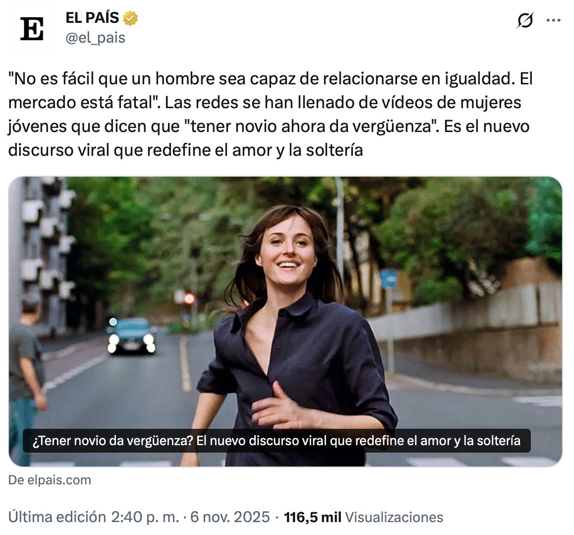 Después de morir su abuelo, Cristina bromeó con su abuela un tiempo: “Venga, abuela, búscate un novio”. Su respuesta, siempre: ”Uno tuve, harta quedé“. Dice Cristina que ya lo dice también Karol G: “Que estar soltera está de moda”. Karol G nació en 1991, la abuela de Cristina, en el 33, Cristina, en el 79. | @elpais