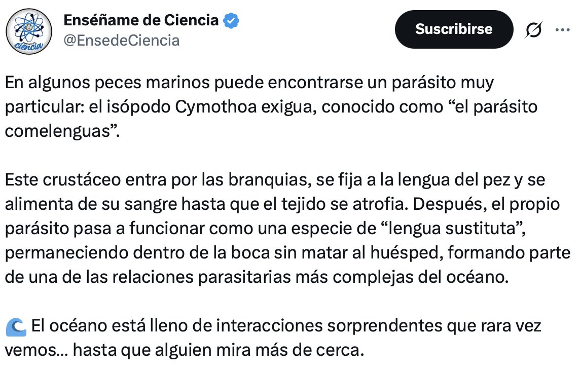 ¿Te imaginas algo así en un humano? Terror. cienciaparásitopeces No hay comentarios random 2 marzo, 2026
