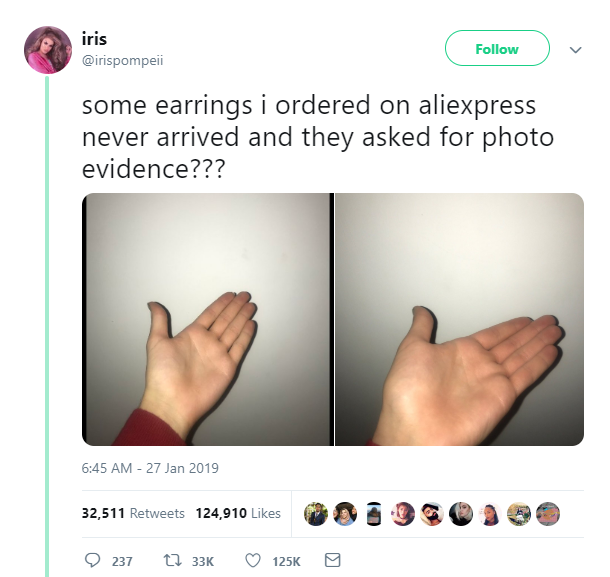 «Pedí unos pendientes por Aliexpress que nunca llegaron y me pidieron una foto de evidencia…» aliexpressBS18pendientestwitter No hay comentarios Sin categoría 30 enero, 2019