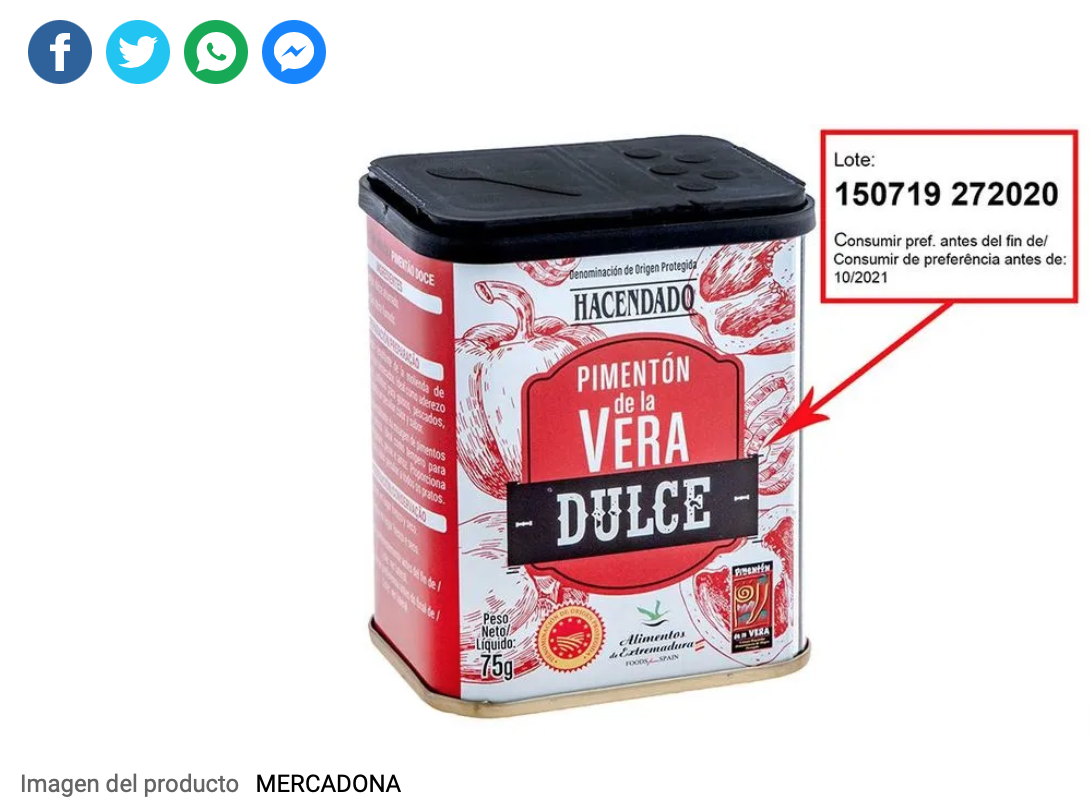 Ojito La empresa Mercadona ha retirado de la comercialización un lote de Pimentón de la Vera dulce por la presencia de Salmonella spp, según informa la propia empresa en un comunicado. | @telecinco BS18mercadonapimentónpimentón dulcesalmonella No hay comentarios Sin categoría 8 noviembre, 2020