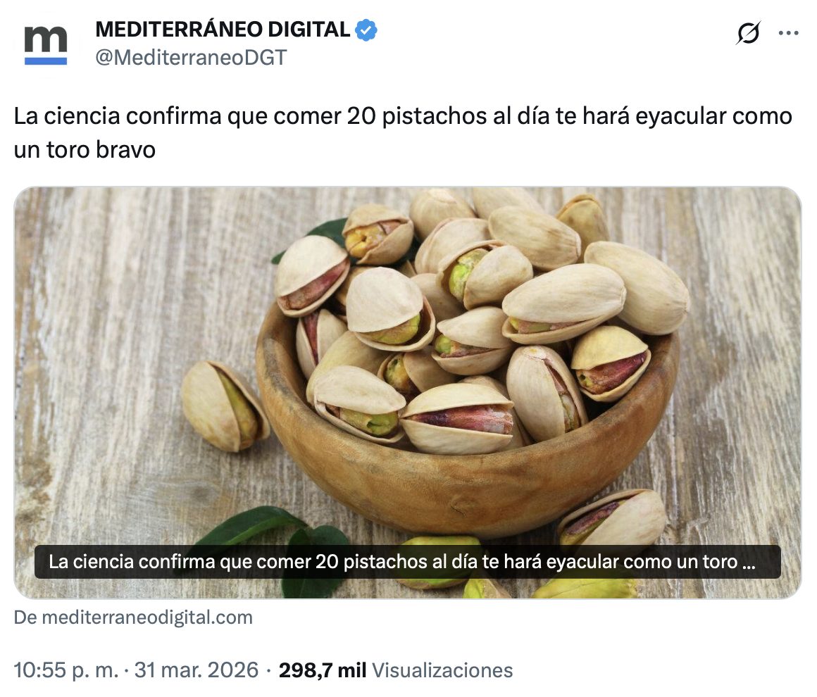 ¿Qué le pasa al del Mediterráneo Digital con los pistachos? pistachopistachos No hay comentarios random 3 semanas ago