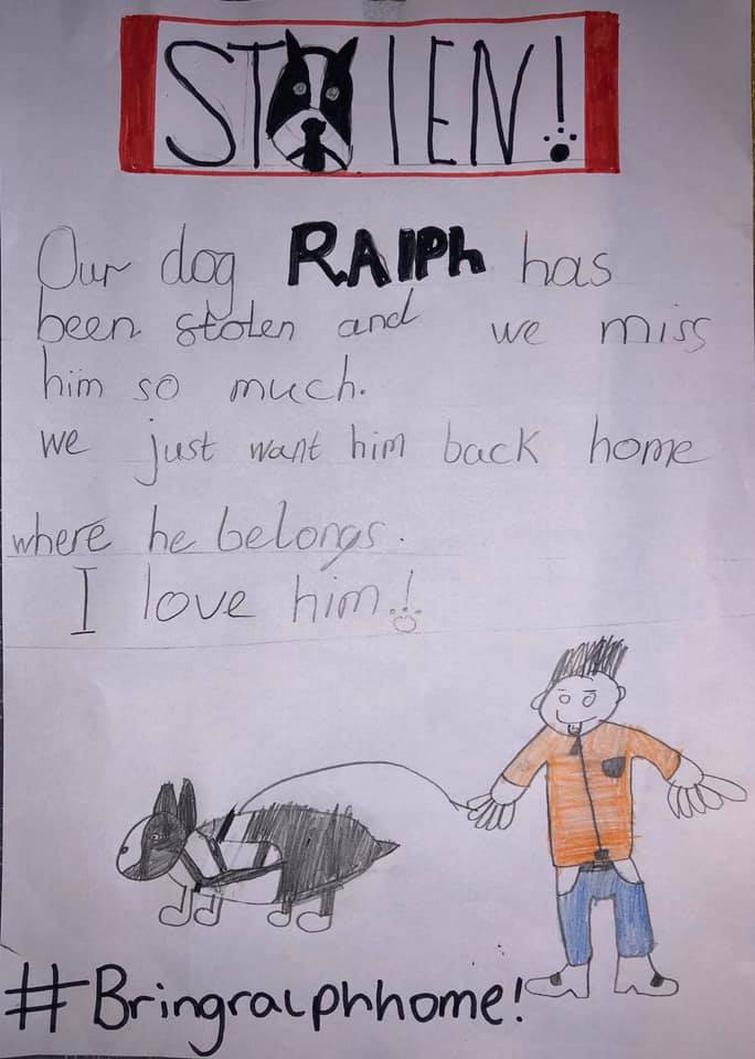 Extra: Un niño tras enterarse del robo se pasó largas horas diseñando los avisos en los que imploraba que se le regresara la mascota.