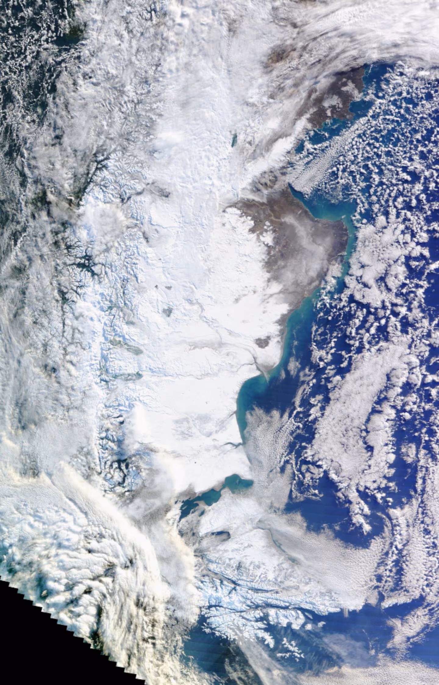 Más allá de la belleza e impacto, la foto revela la dura situación que se vive en la región por las intensas nevadas que se producen desde hace varios días. Con un 70% de la superficie cubierta de nieve, el temporal afecta a decenas de localidades, parajes y al ganado ovino y bovino.