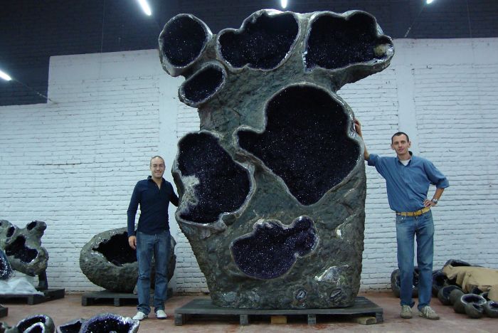 La mayor geoda de amatista pesa 13000 kilos, mide 3 metros de largo, 1,8 m de largo y 2,2 m de altura. Se encuentra expuesto en Shandong, China.